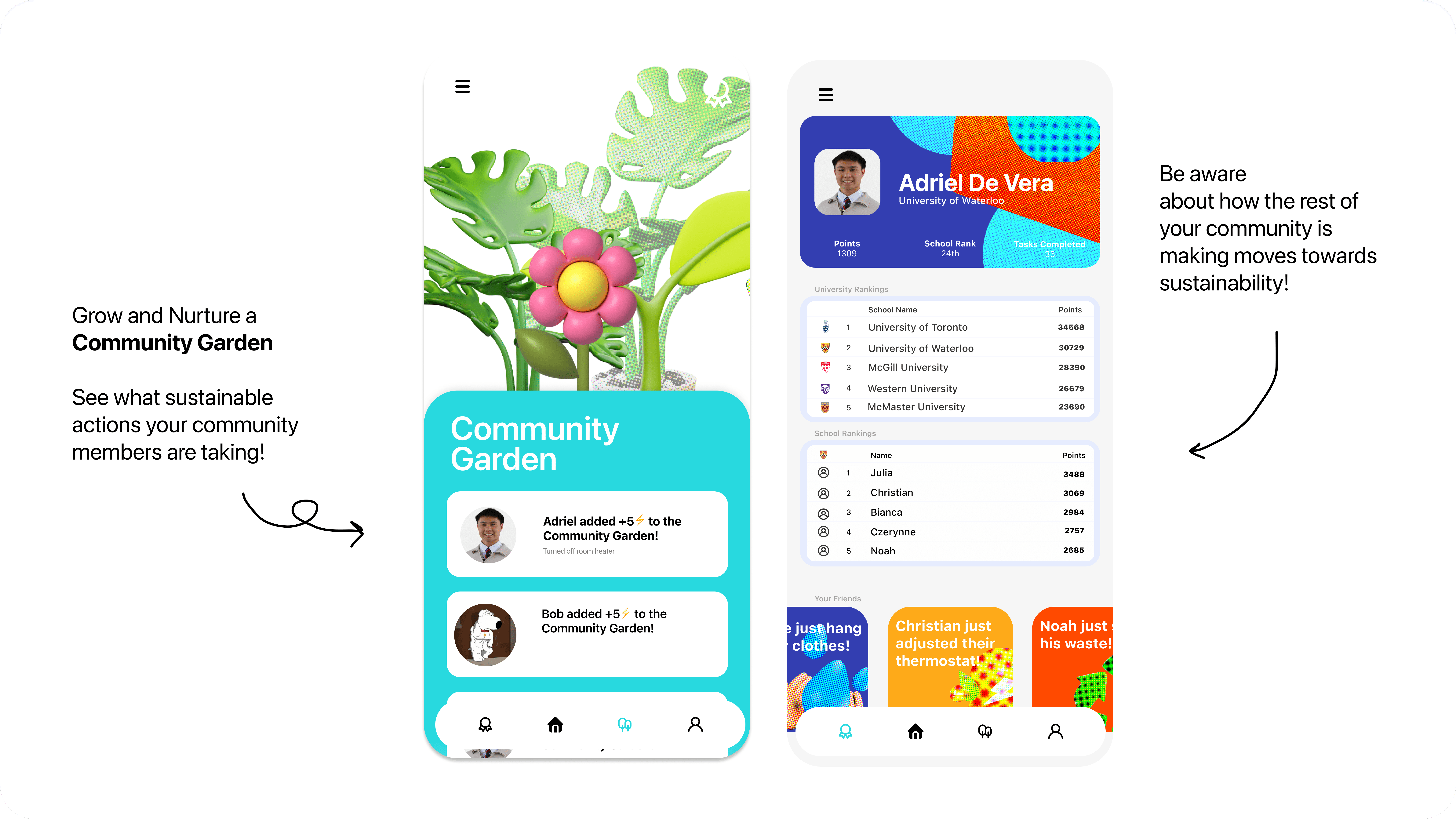 Working on EcoBloom showed me how powerful gamification can be when it’s paired with real-world impact. I learned that students are far more motivated when sustainability feels fun, visual, and community-driven—not just a personal responsibility. By turning small eco-friendly actions into garden growth and collective leaderboard progress, I saw how design can transform habits into a shared movement. Ultimately, this project reinforced that encouraging environmental change isn’t just about tracking behavior—it’s about sparking pride, connection, and a sense of belonging around a common goal.