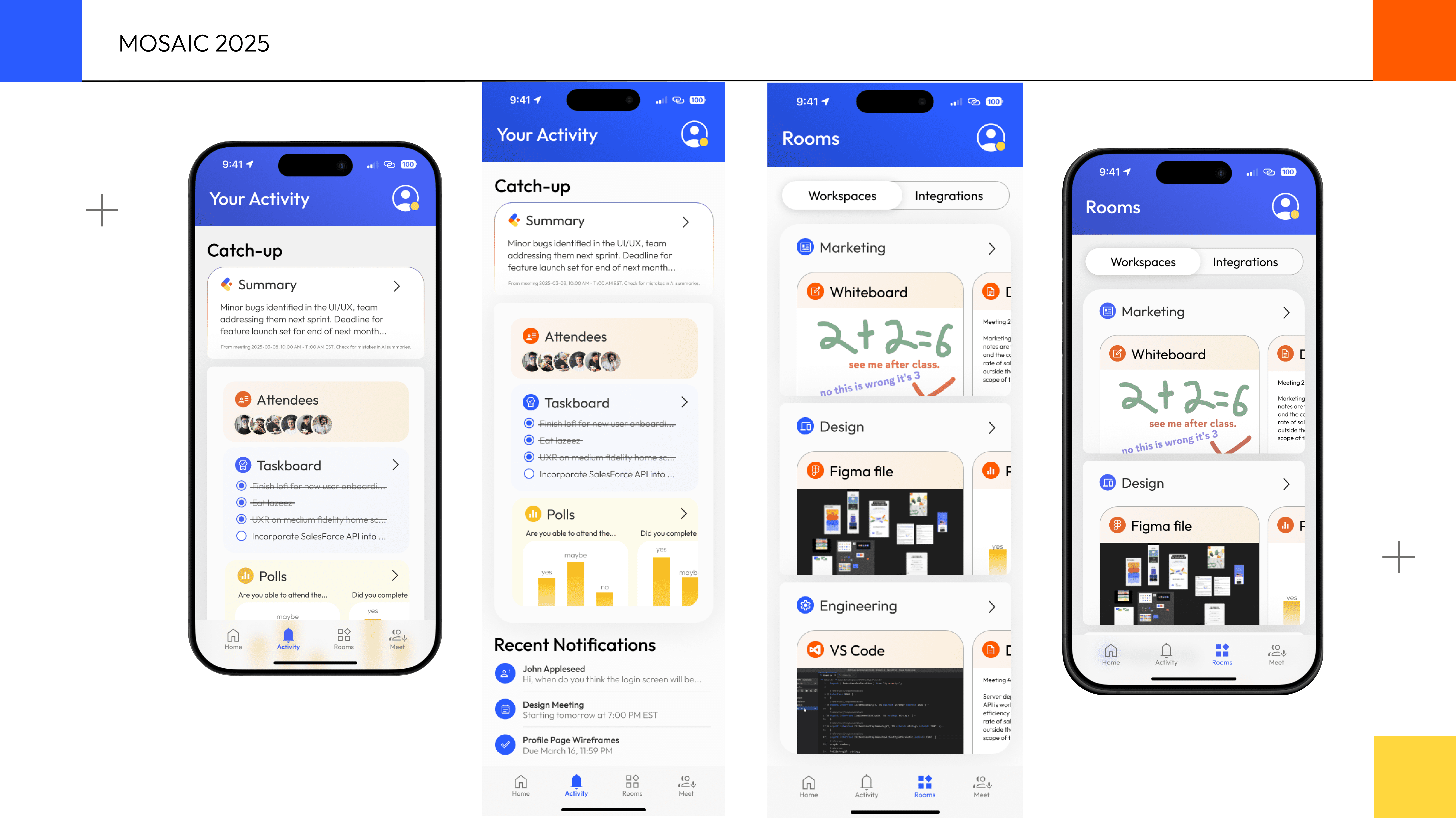 The Activity tab makes it easy to stay aligned, even if you missed a meeting. You can review meeting summaries, check who attended, revisit the taskboard, and browse any polls that were shared. Within Rooms, you can also explore each department’s workspace, complete with shared community files, giving you a clear and organized view of everything your team is working on.