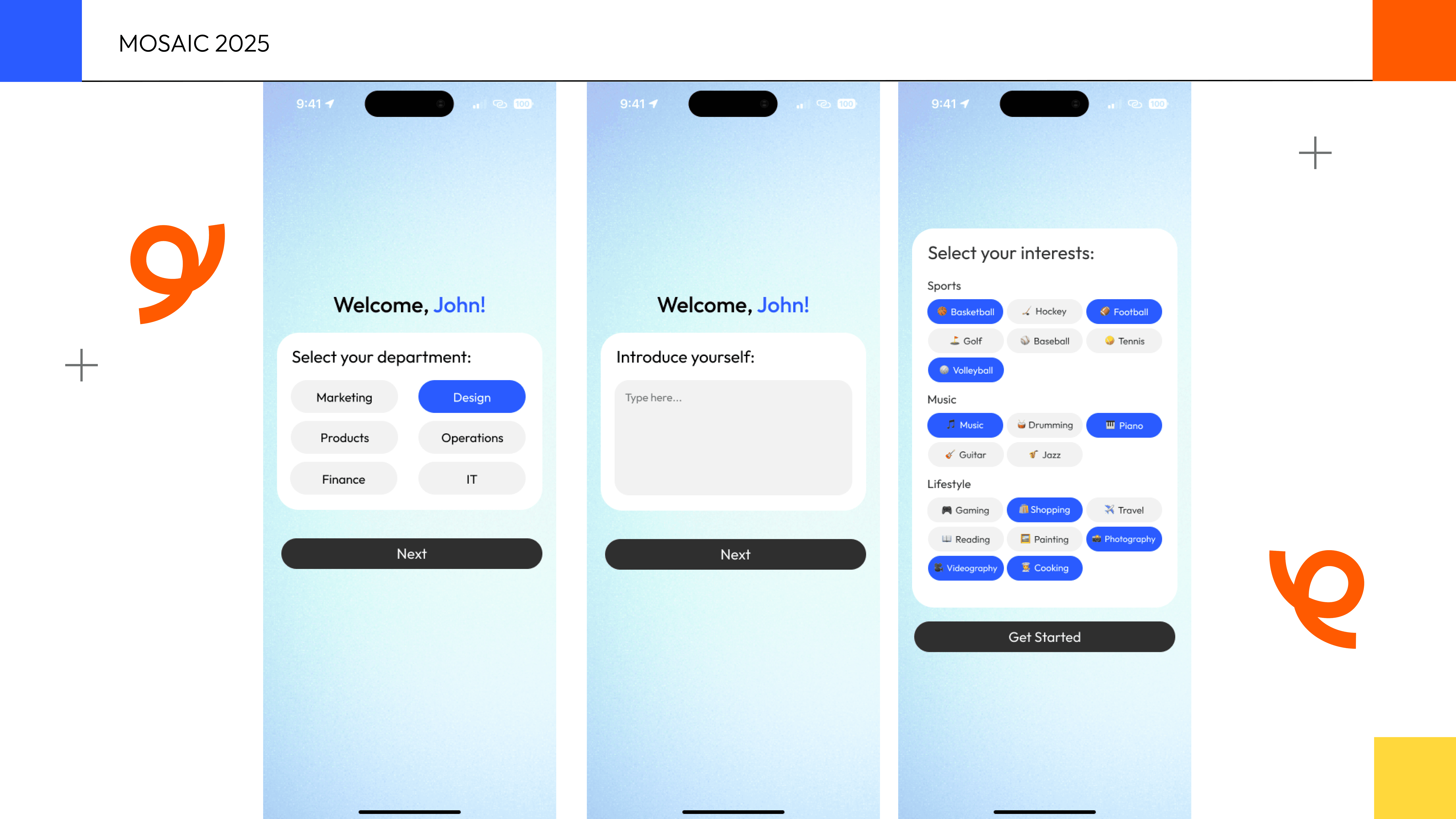 Overlap includes a connection-focused onboarding flow that goes beyond job titles. Instead of only collecting your role and department, it invites you to share a short personal bio and select your interests. This information appears on your profile, giving teammates an easy way to connect with you on a more human level and helping remote relationships form naturally, even across time zones.